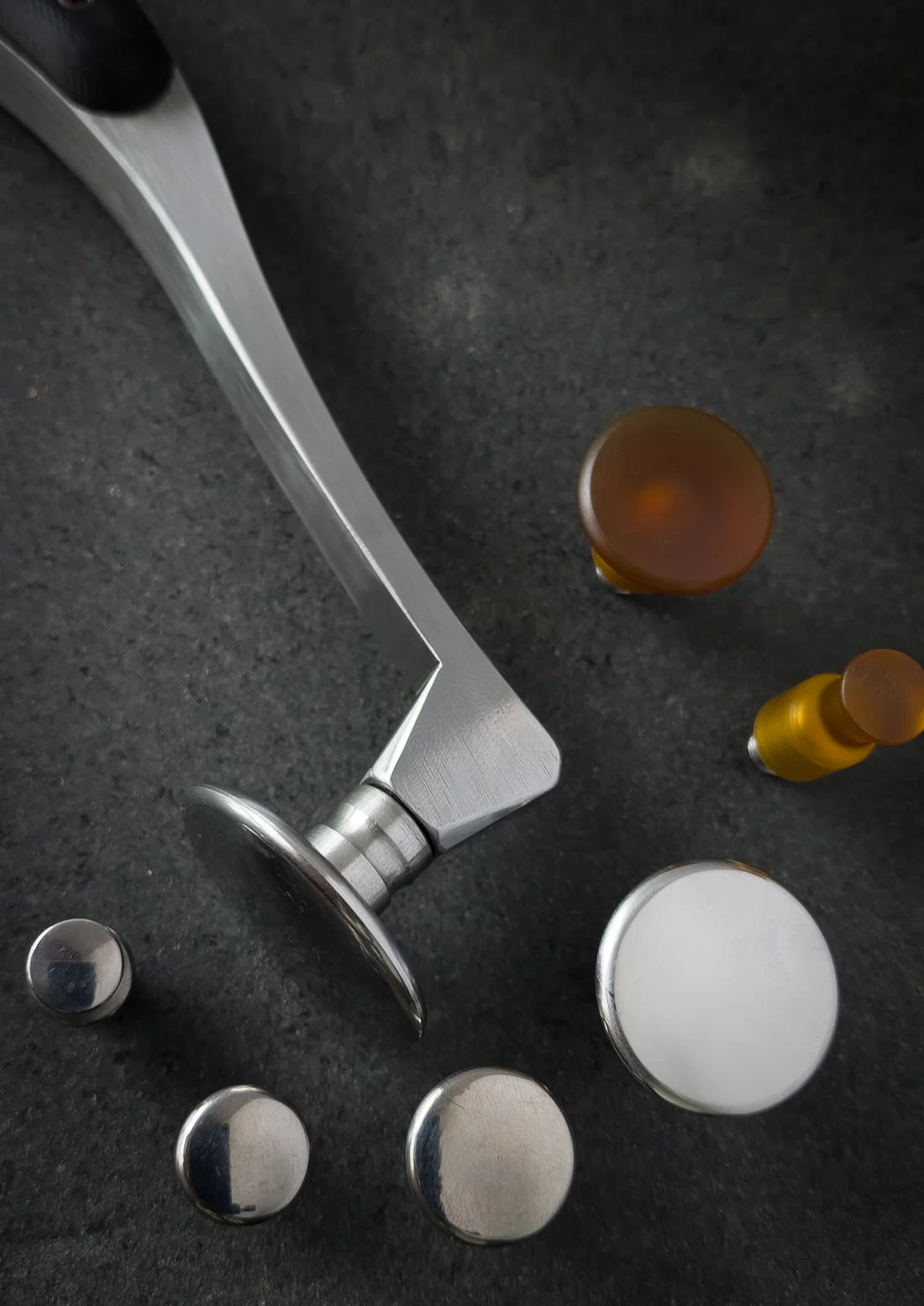 The mallet comes with multiple options of interchangeable heads that allows you to work with a wide variety of projects and materials. From a 45 degree box stitch to the gausset of a bag, we have got you covered. Each head has been carefully crafted with a highly polished non-marring dome shape. ULTEM heads are also great for wood surfaces but please note that this cannot be used to strike metal surfaces to prevent cracking of the ULTEM material.