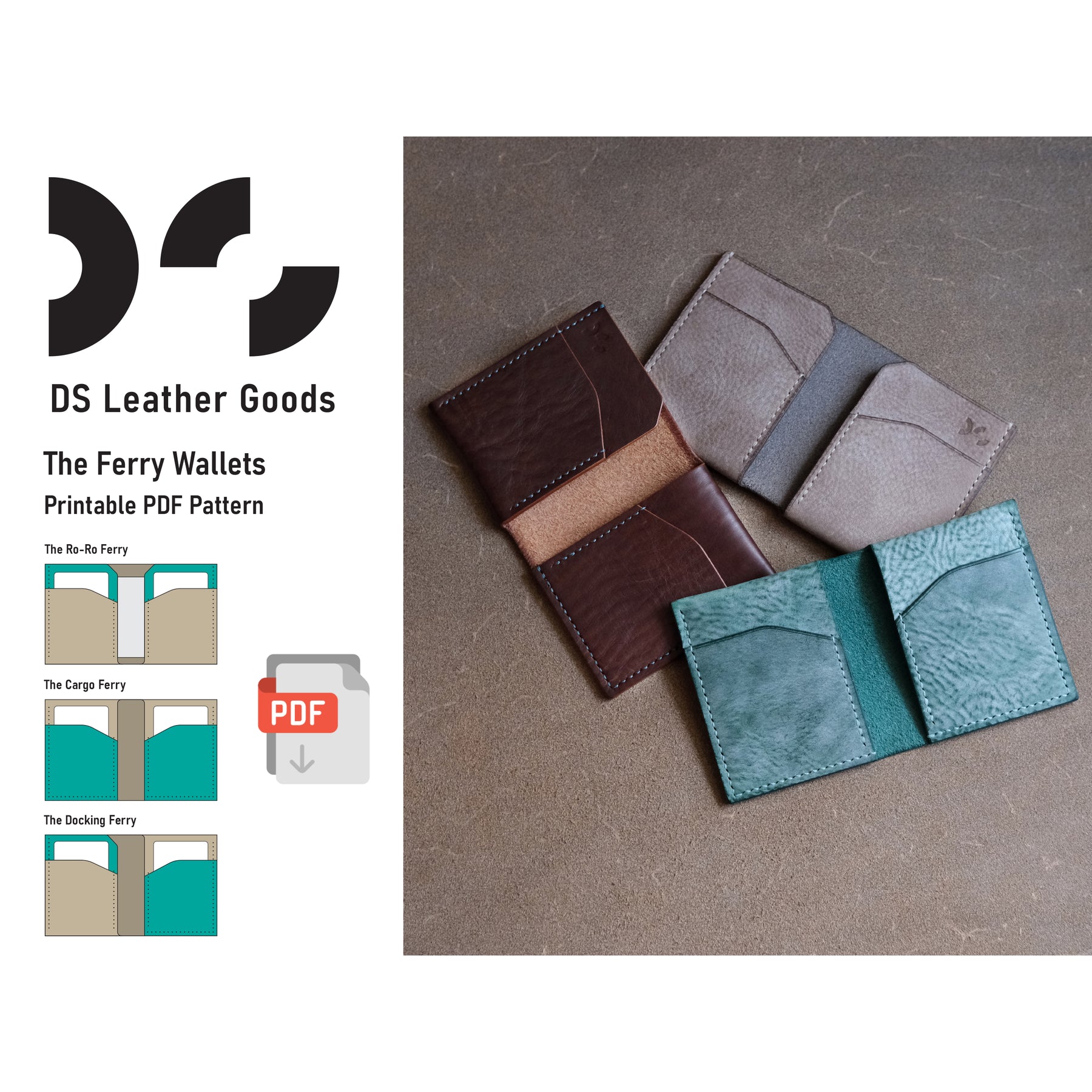 * The Docking Ferry: A slim card holder pattern that combines the best of both designs, offering a quick-access cash tuck on one side and two card pockets on the other.