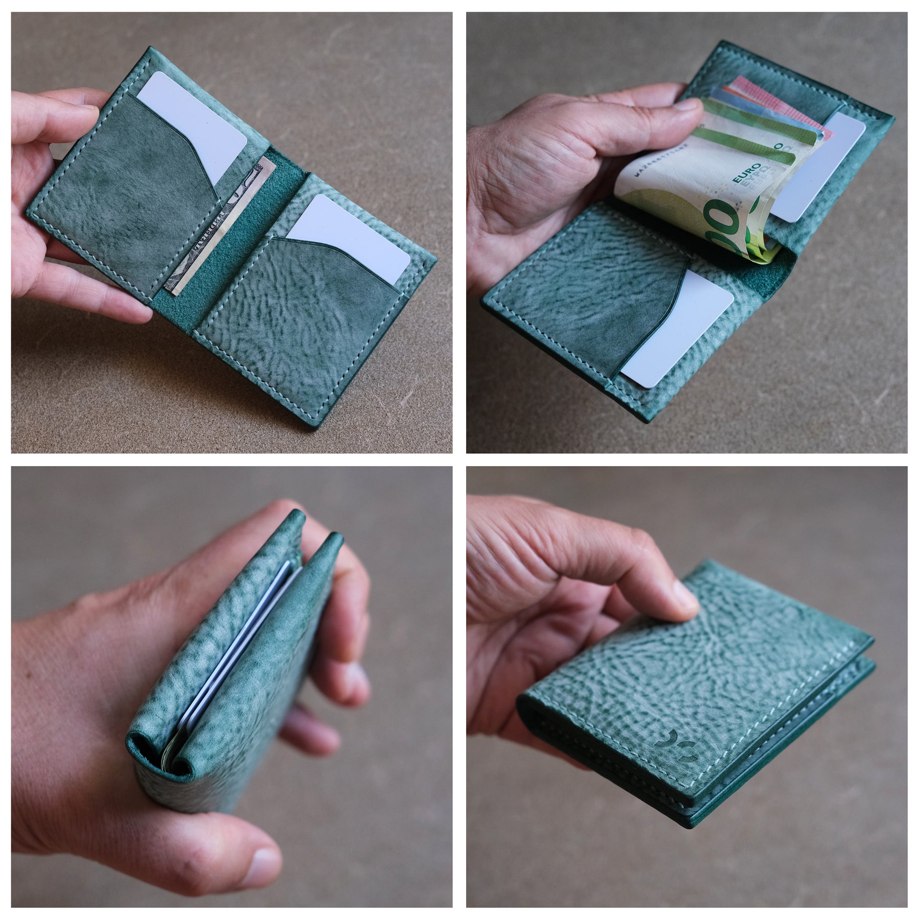 * The Ro-Ro Ferry: A minimalist wallet pattern with an open cash compartment for unfolded bills (up to 100 Euro).