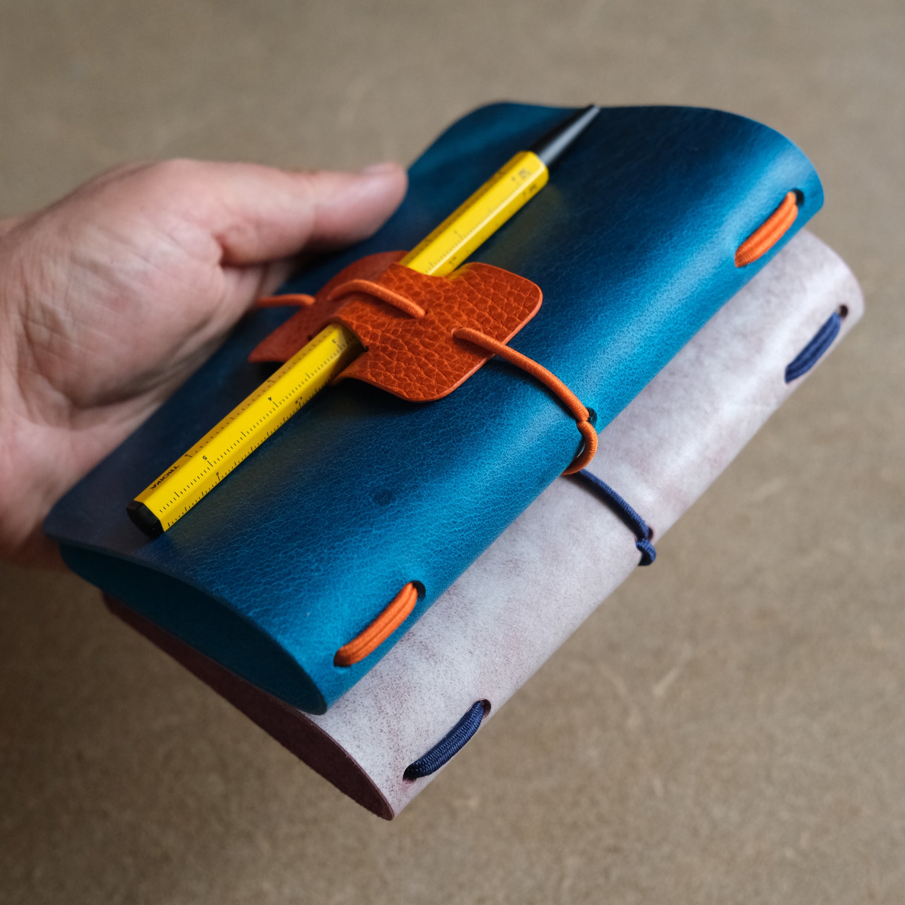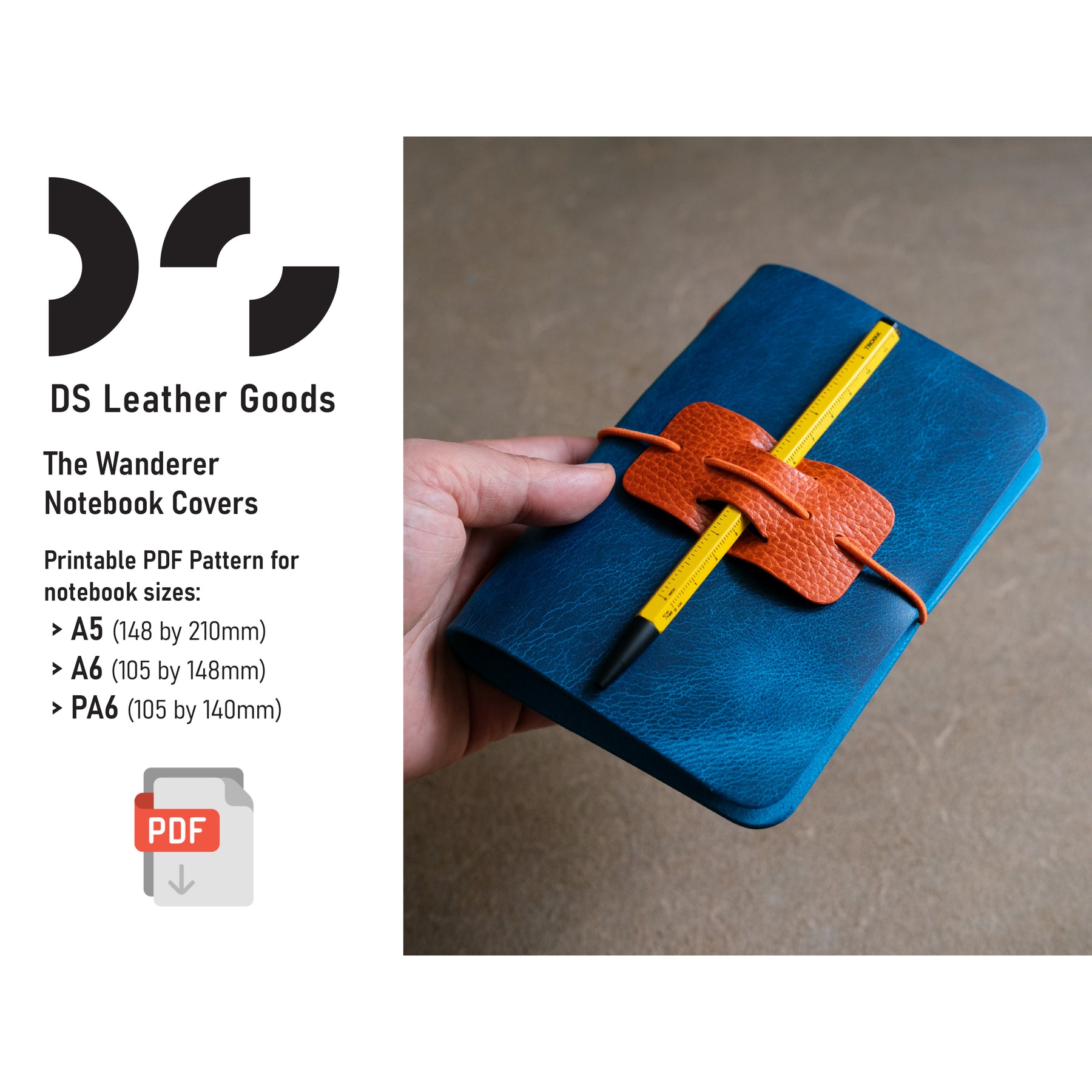 The Wanderer is a PDF leather pattern to create a three different size notebook covers that fits two A5, A6 or PA6 size notebooks respectively. This is a beginner skill level leather template that is a stitch-less pattern and features a pen holder again made out of leather.